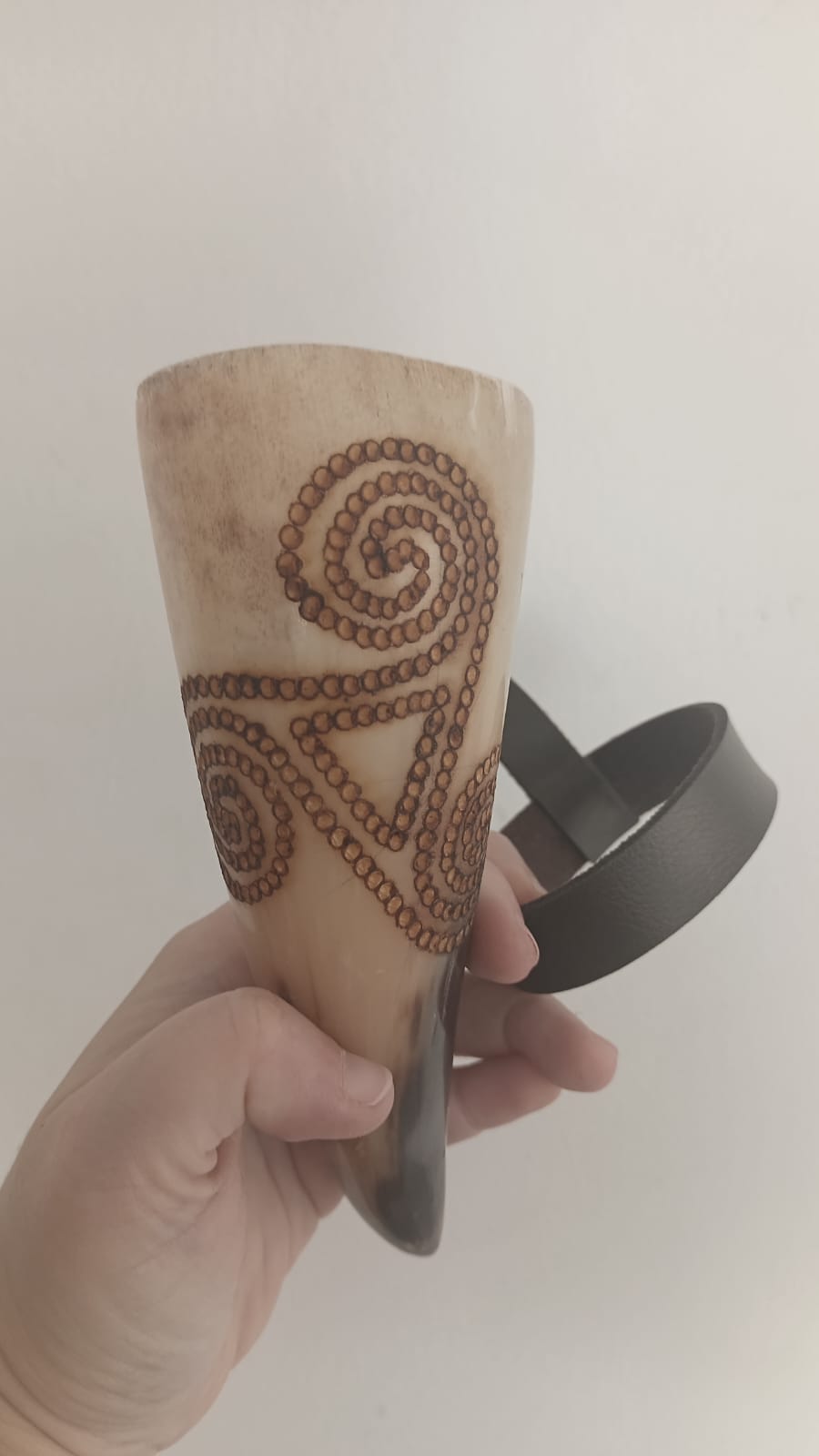 Drink horn feito em chifre natural.