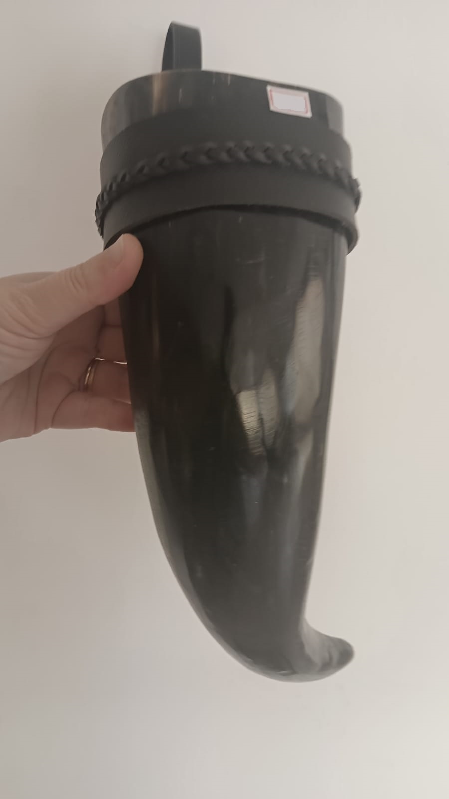 Drink horn feito em chifre natural. Além de lindo, é enorme.