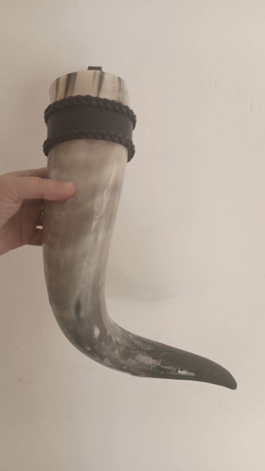 Drink horn feito em chifre natural. Além de lindo, é enorme.